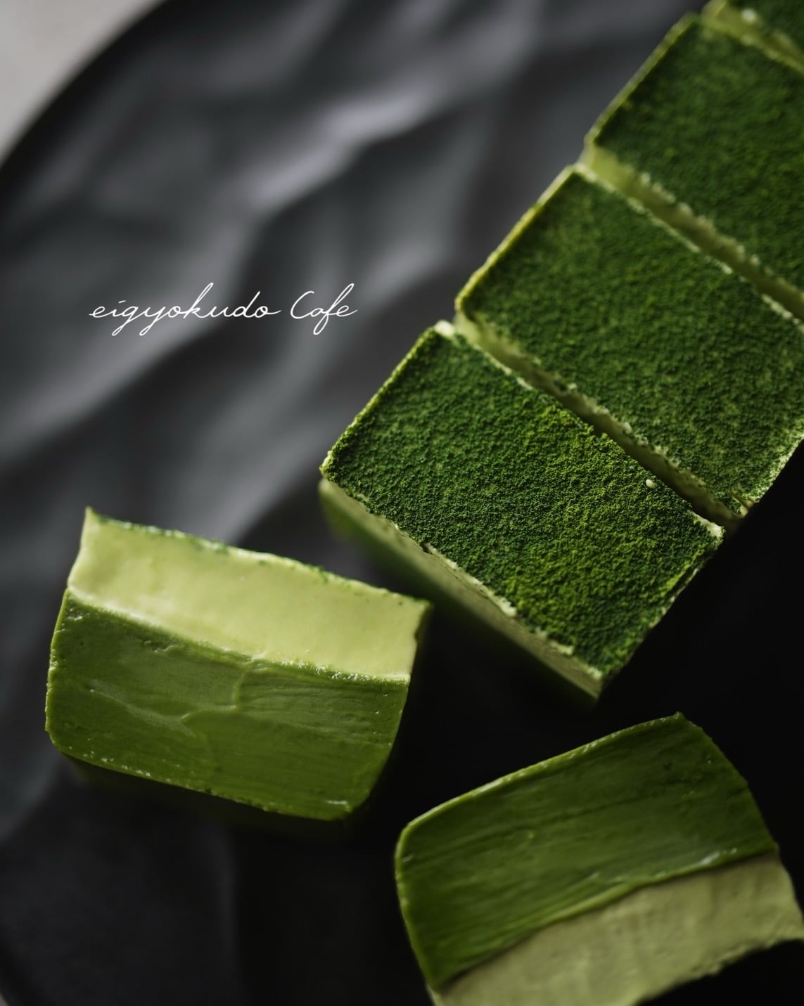 京都小山園の抹茶を贅沢に使用し、榮玉堂独自の焼き方で低温でじっくり火を入れて作る抹茶テリーヌ。3種のチーズをブレンドしたこだわりの抹茶クリームとの相性も良く、口に入れると滑らかで上質な抹茶テリーヌがジワーと溶けていく感覚をお楽しみください。