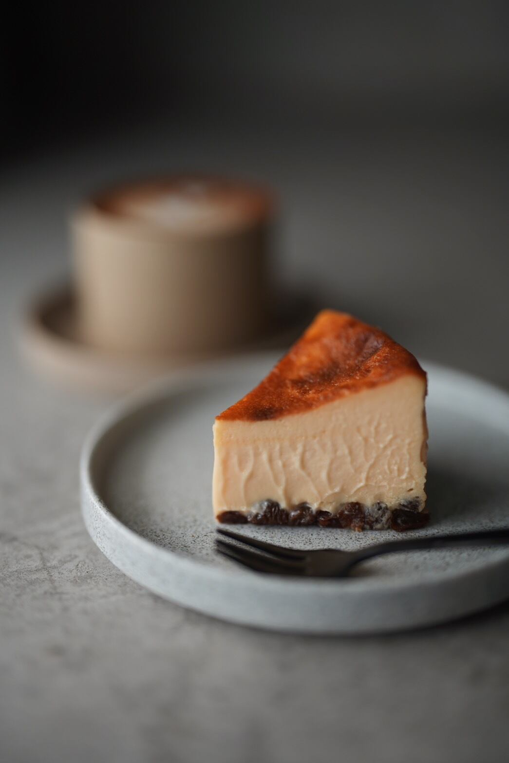 土台にはラムレーズンを敷き、チーズケーキにもラム酒をしっかりと効かせました。