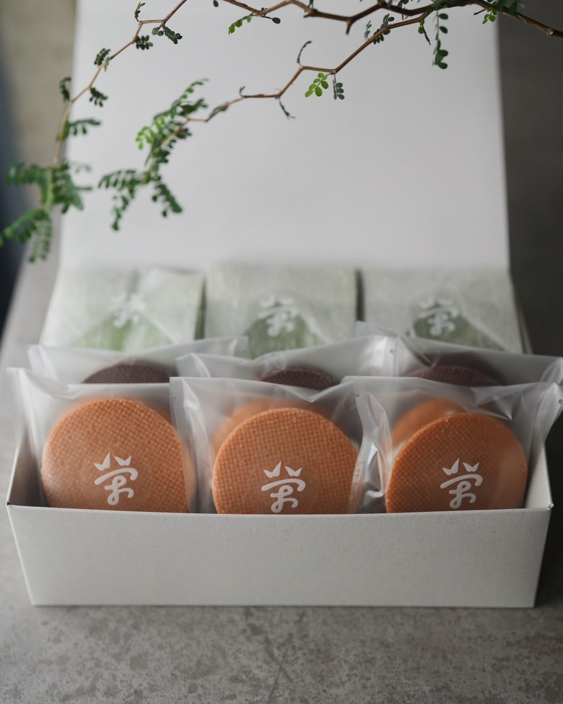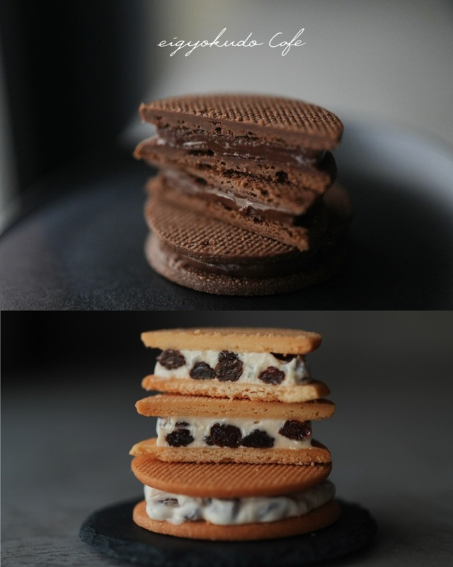 ラムレーズンサンド3個とチョコレートガナッシュサンド3個、カップ抹茶テリーヌ3個のセットです。